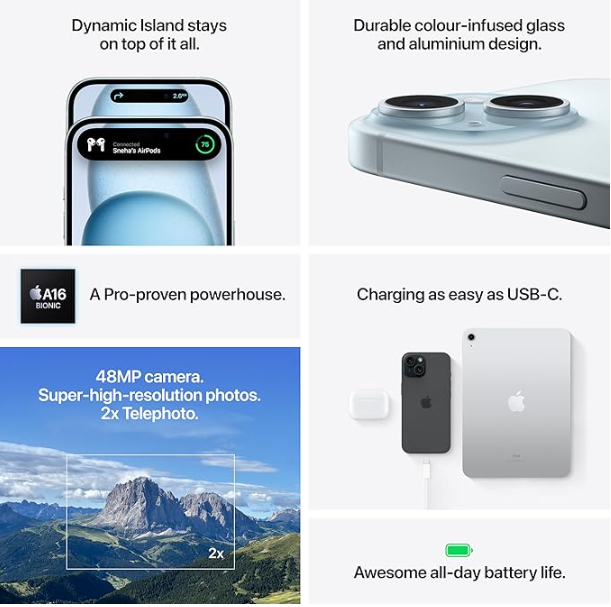 आप की जानकारी के लिए बता देता हु आप यहाँ से कम दामो में खरीद भी सकते है हमारे लिंक का उपयोग कर के आज मै बताऊंगा की i phone 15 के बारे में , आइये देखते है इसके फीचर के बारे में |